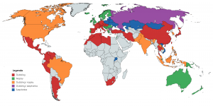 Na poniższej liście przedstawiono i pokrótce omówiono, w jaki sposób filmy i seriale prezentowane są widowni w poszczególnych krajach na świecie.
